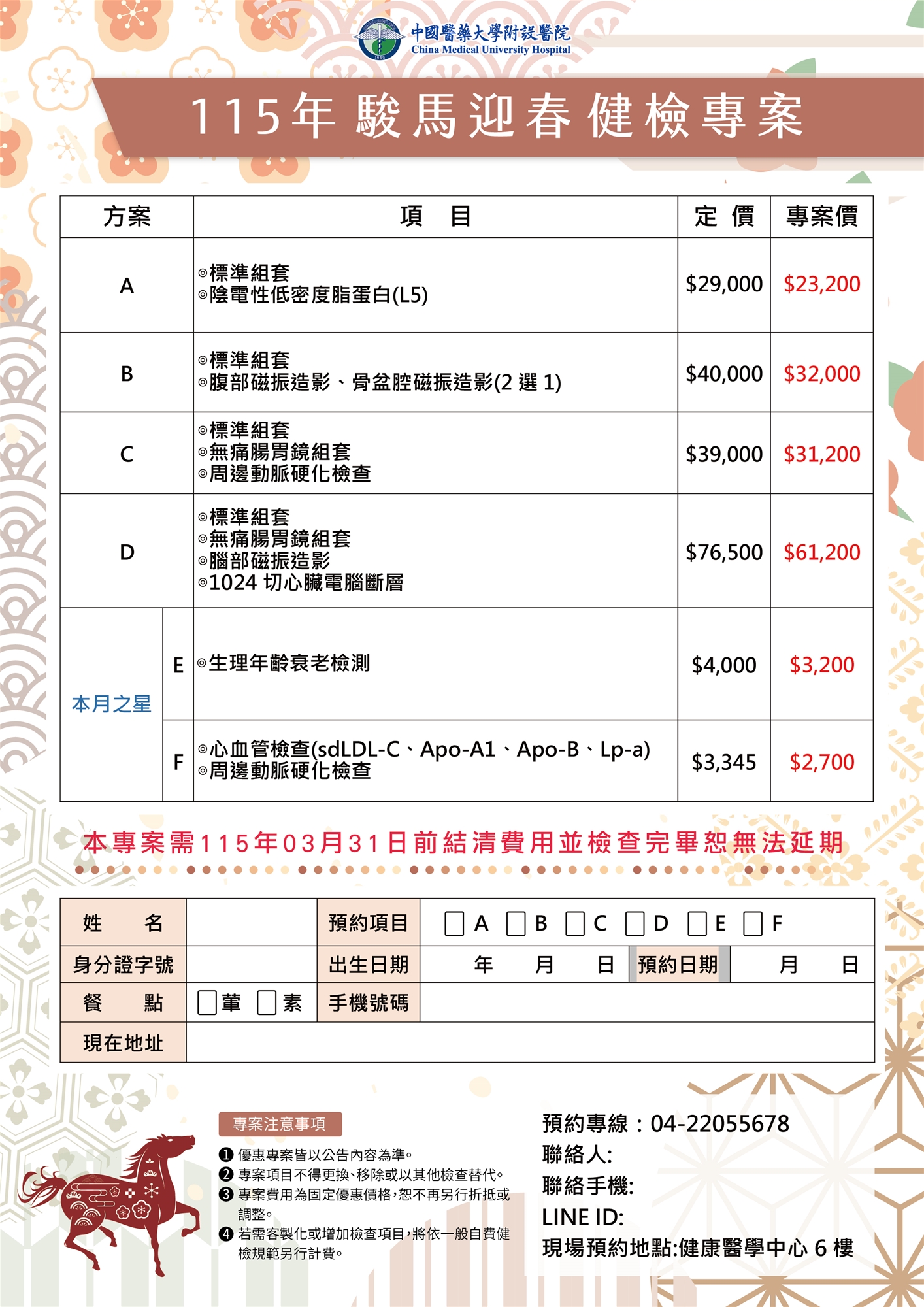 【115年 駿馬迎春 健檢專案】
