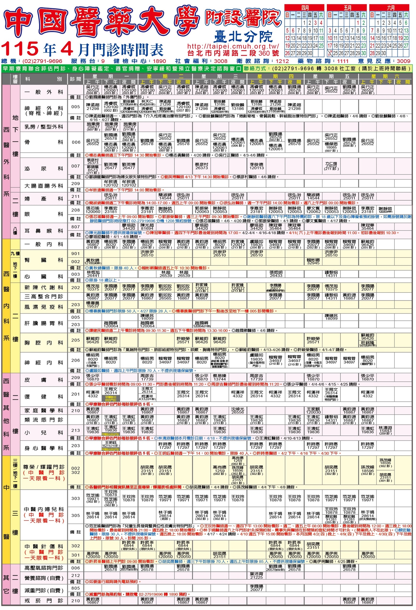 臺北分院門診時刻表