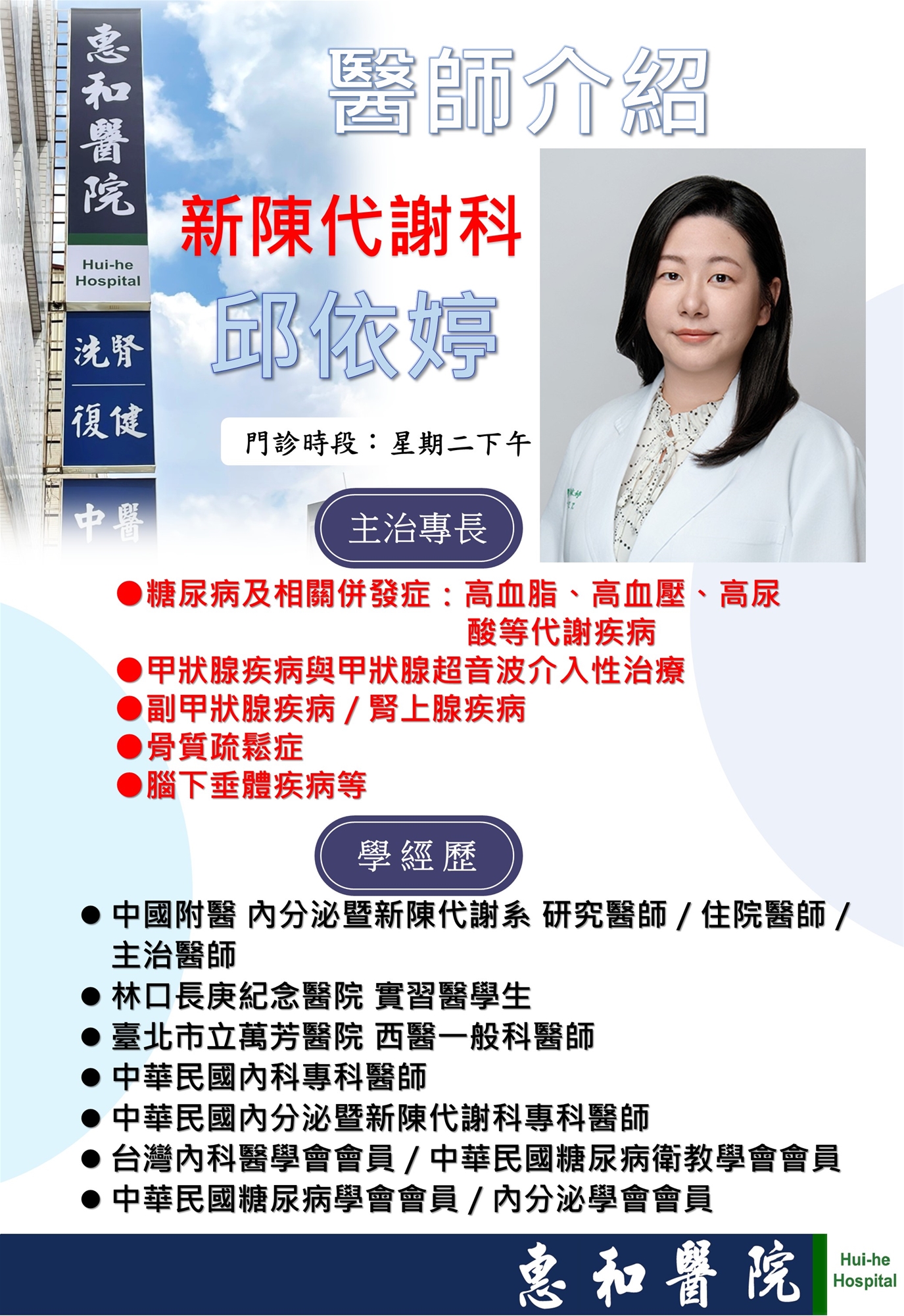 115年4月起新增新陳代謝科邱依婷醫師