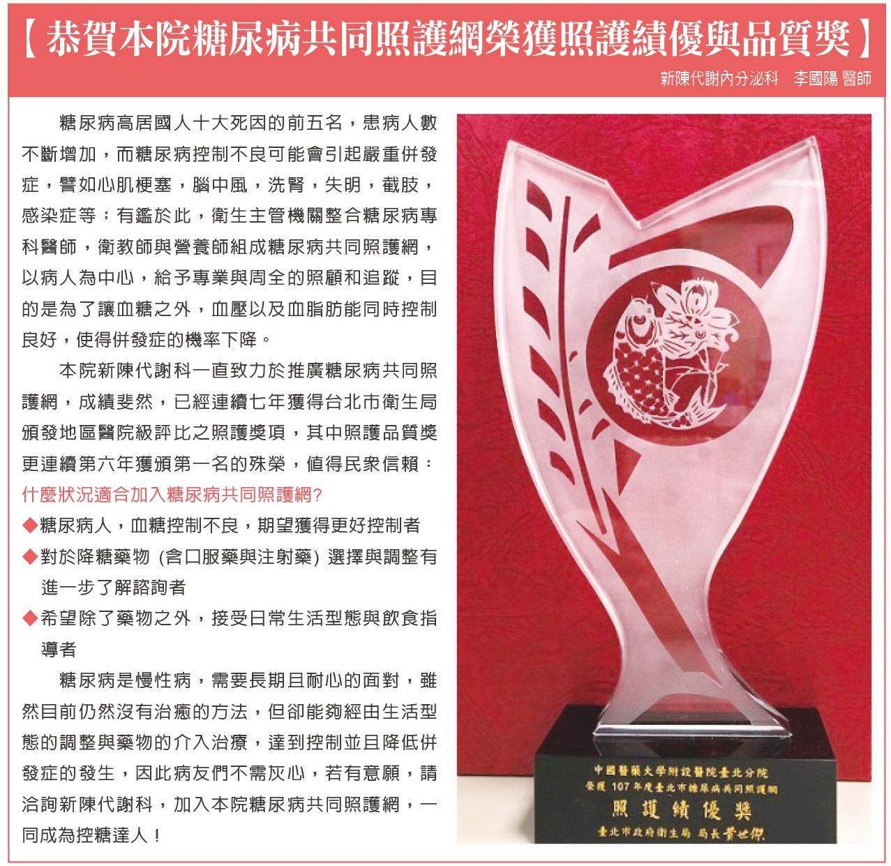 恭賀本院糖尿病共同照護網榮獲照護績優與品質獎 2019-05