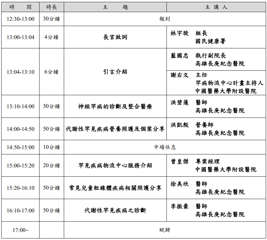 114年罕見疾病特殊營養食品暨緊急需用藥物物流中心教育訓練課程表