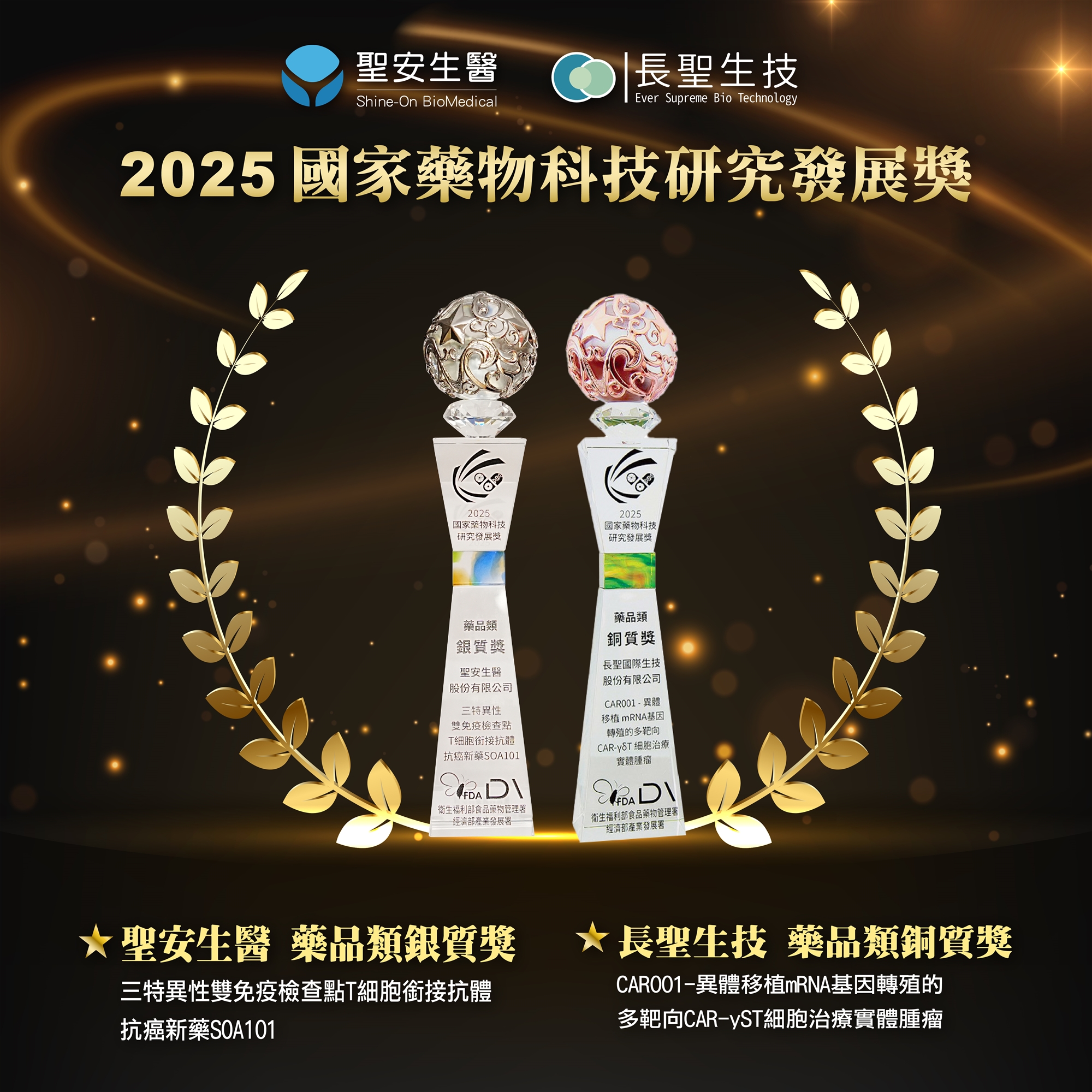衛生福利部與經濟部18日公布「2025國家藥物科技研究發展獎」得獎名單,中國醫藥大學醫療體系暨生醫園區旗下兩家衍生企業-「聖安生醫」與「長聖生技」再次以卓越的創新能量脫穎而出,分別榮獲「藥品類」銀質獎與銅質獎(金獎從缺),展現中醫大體系深厚的研發底蘊與國際級生醫轉譯能力。