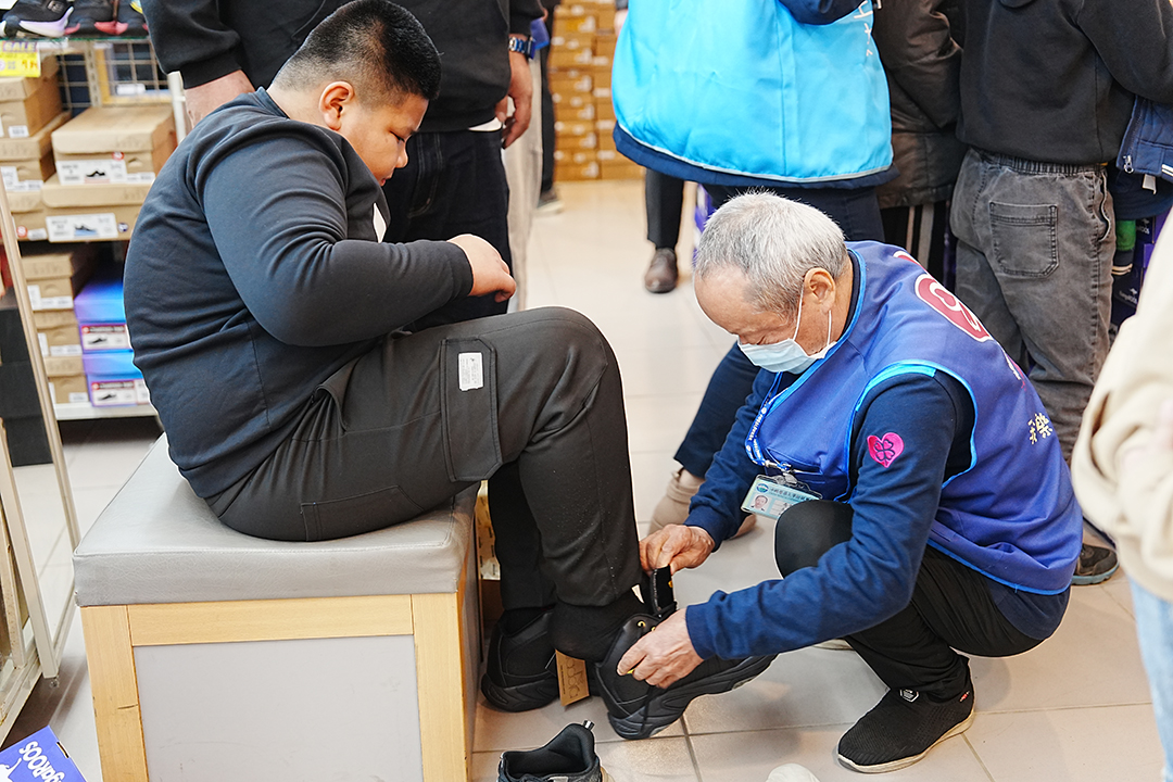幕後直擊/志工夥伴細心協助孩子穿上新鞋,在歲末時節送上實際的關懷與祝福,陪伴孩子踏出嶄新的一步。