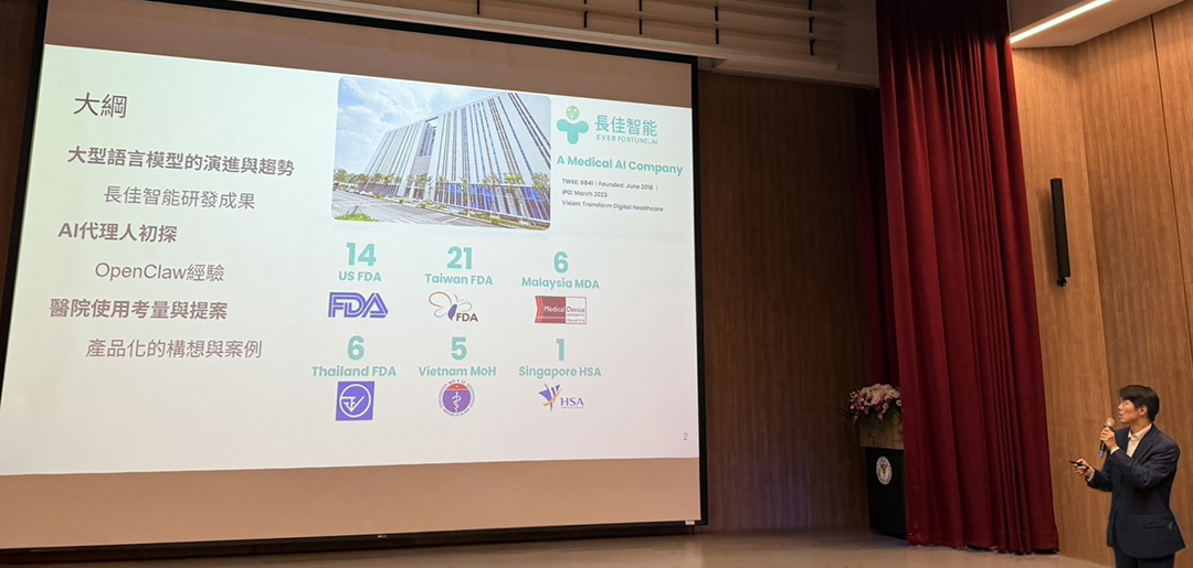 在「中國醫藥大學發展人工智慧與機器人研討會」中,針對落地的挑戰,不只談技術,更展現從 AI 應用到臨床落地與產業化的整體布局。